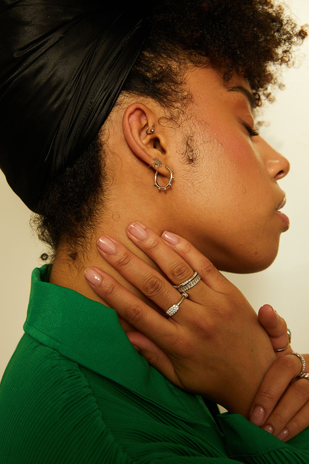 Sterling Silver: We use certified 925 sterling silver which is 92.5% pure silver mixed with alloys to create a long-lasting precious metal. We coat the jewellery with a generous layer of rhodium plating to ensure shine and durability from everyday wear. You can use the polishing cloth provided to keep your jewellery looking shiny. All sterling silver items are stamped with the '925' mark indicating the purity of the metal.