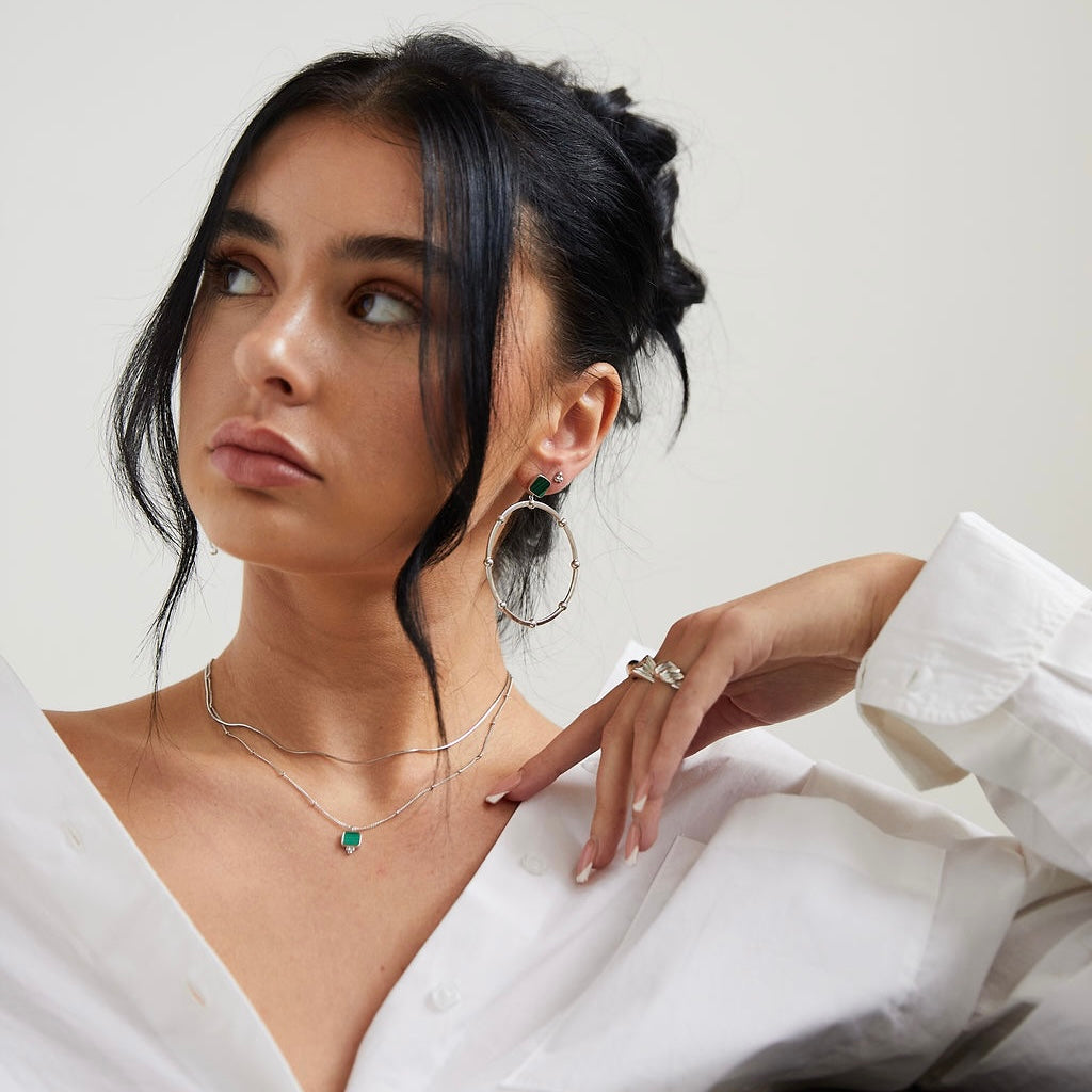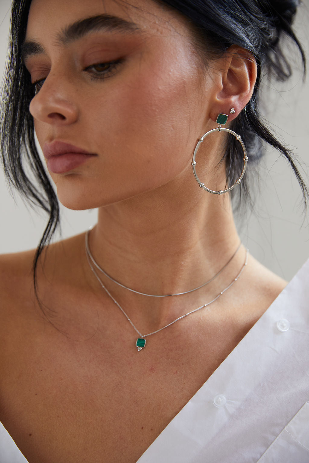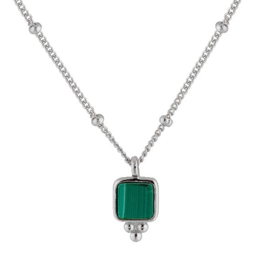 A semi-precious edition to your layers. The Dulcie necklace drops to a mesmerising green malachite pendant, this is a must-have for your jewellery box.