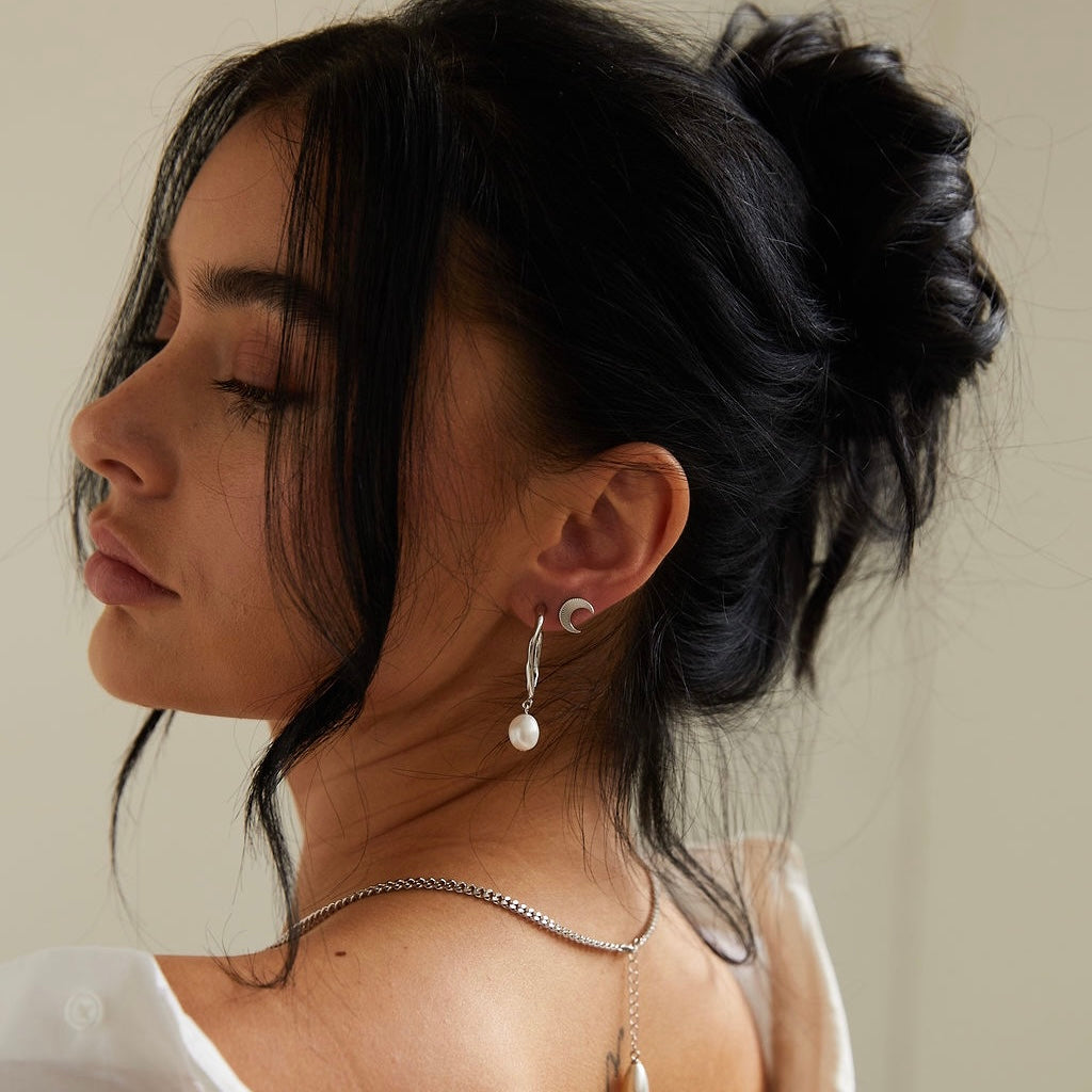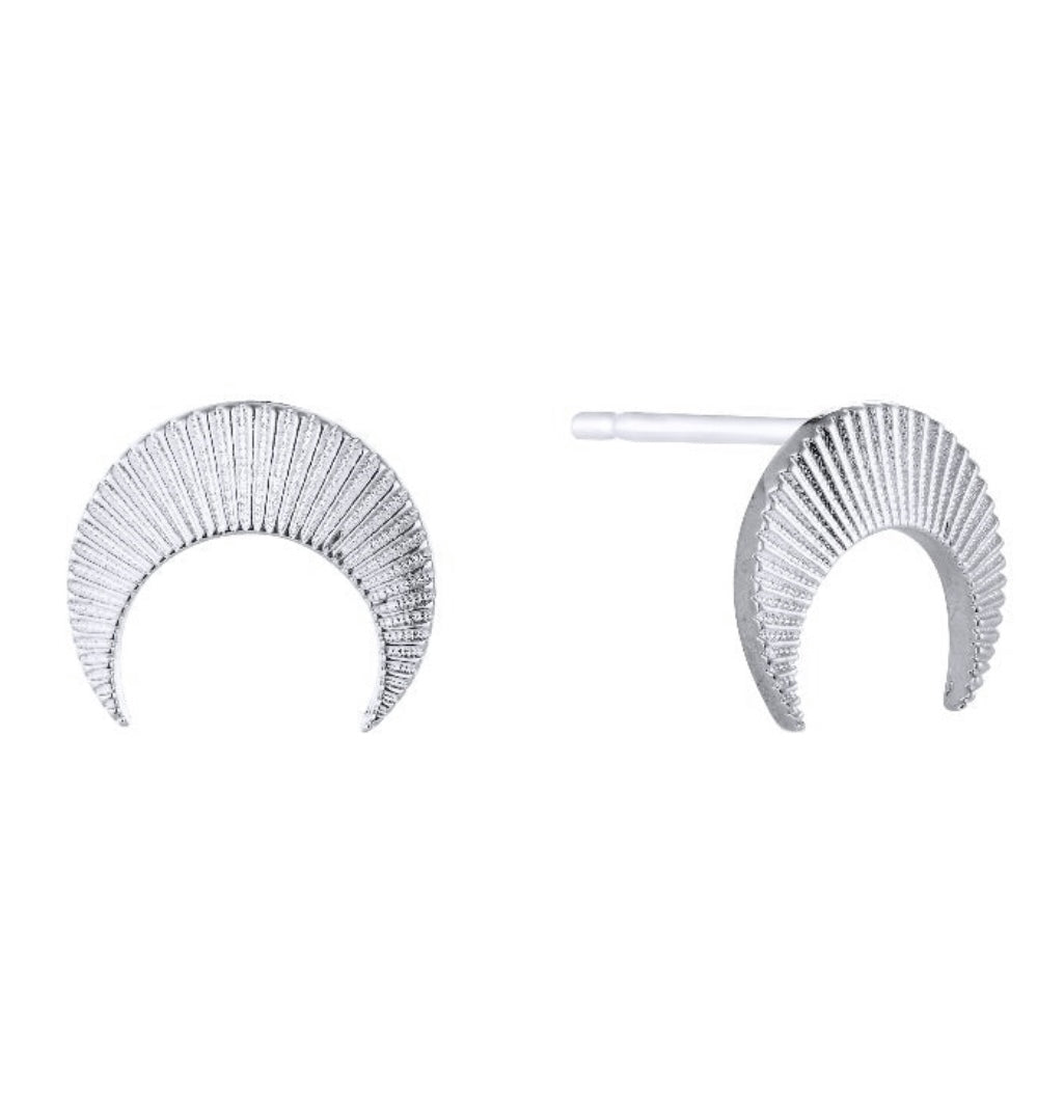 Luna Moon Silver Stud Earrings